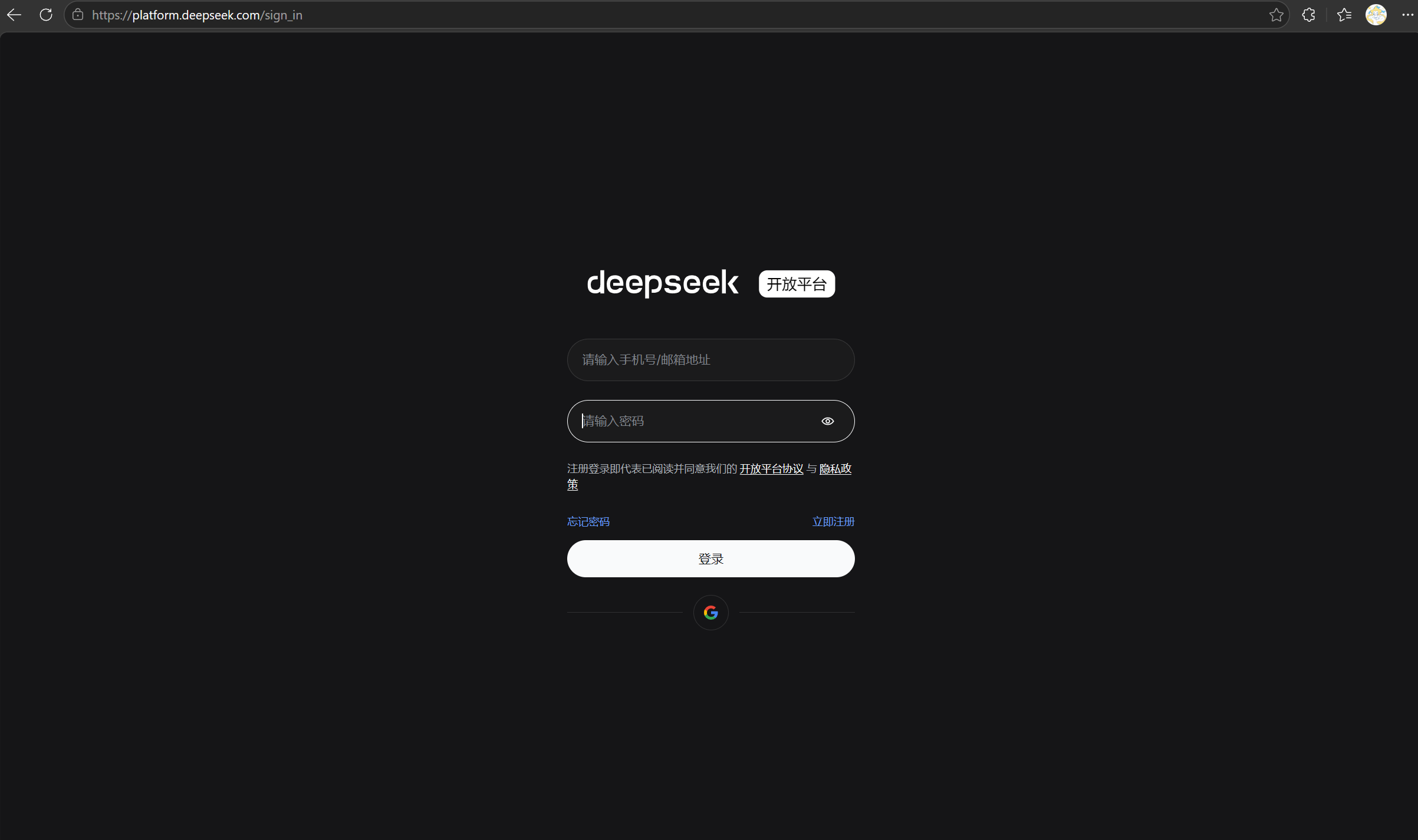 DeepSeek平台注册地址:https://platform.deepseek.com/sign_in